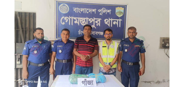 বুধবার (২২ এপ্রিল) গোমস্তাপুর থানা পুলিশের একটি চৌকস দল এই অভিযান পরিচালনা করে।পুলিশ সূত্রে জানা গেছে, গোপন সংবাদের ভিত্তিতে গোমস্তাপুর থানার একটি দল বুধবার অভিযান চালায়। অভিযানে ২ কেজি গাঁজাসহ মোঃ হাবিবুর রহমান (৩৫) নামে এক যুবককে আটক করা হয়। হাবিবুর রহমান শিবগঞ্জ উপজেলার কানসাট এলাকার গোপালনগর মোড়ের মৃত আব্দুল হামিদের ছেলে।গ্রেপ্তারকৃত আসামীর বিরুদ্ধে গোমস্তাপুর থানায় মাদকদ্রব্য নিয়ন্ত্রণ আইনে মামলা দায়ের করা হয়েছে (মামলা নং-২৩, তারিখ: ২২/০৪/২০২৬ খ্রি.)।