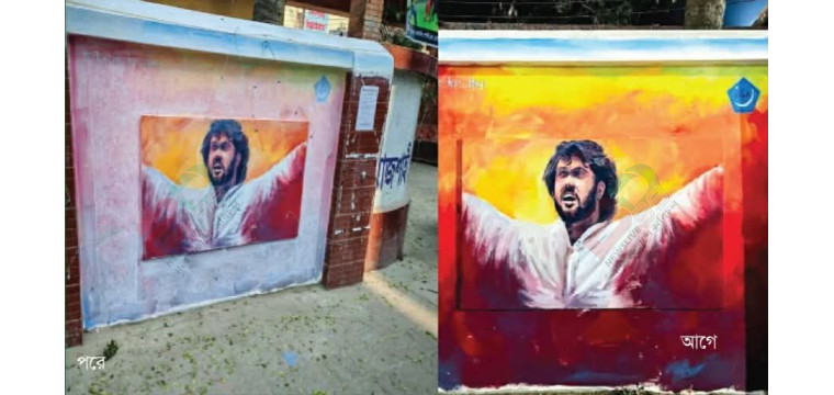 রাজশাহী মেডিকেল কলেজে শহীদ শরীফ ওসমান হাদির স্মরণে আঁকা গ্রাফিতি অপসারণ।