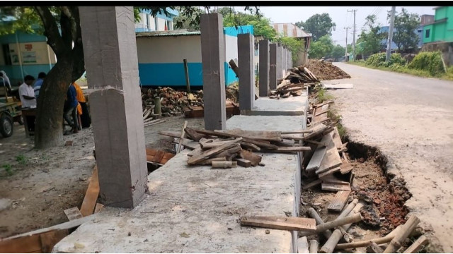 খবর পেয়ে প্রতিবেদক সরেজমিনে গিয়ে দেখতে পাই ঠিকাদার টগর ও মতিন প্রকল্পের ড্রইং ও সিডিউল কে বৃদ্ধাঙ্গুলি দেখিয়ে নাচোল উপজেলা প্রাণিসম্পদ অধিদপ্তরের সামনে তৈরিকৃত ড্রেনের উপর প্রাচীর নির্মাণের জন্য প্রায় আট ফিট উঁচু করে তুলেছে একাধিক পিলার। যা মন গড়া ভিত্তিহীন কাজের সামিল। এছাড়াও মোটা অংকের টাকা খেয়ে বিভিন্ন জায়গা দিয়ে আঁকা বাঁকা করে ড্রেন নির্মাণ,পরিমাণ মতো রড সিমেন্ট ছাড়াই নরমাল ভরাট বালু দিয়ে কাদামাটির মধ্যে ঢালাই করেই চালাচ্ছে ড্রেনের কাজ।
