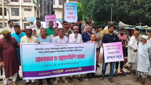 চাঁপাইনবাবগঞ্জ বিশ্বরোড মোড় থেকে বেলেপুকুর পর্যন্ত সংযোগ সড়ক নির্মাণে শাহ নেয়ামতুল্লাহ কলেজ কর্তৃক বাধাদানে এলাকাবাসী পক্ষথেকে মানববন্ধন অনুষ্ঠিত হয়।