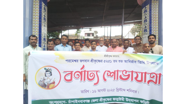 চাঁপাইনবাবগঞ্জে লীলাপুরষোত্তম ভগবান শ্রীকৃষ্ণের শুভ জন্মাষ্টমী উপলক্ষে আলোচনাসভা ও আনন্দোৎসবের মধ্যদিয়ে বর্ণাঢ্য শোভাযাত্রা অনুষ্ঠিত হয়েছে।