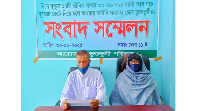শনিবার (৩০ আগস্ট) কলেজ মোড়স্থ একতা মার্কেটে সংবাদ সম্মেলনে ইসলাম আলী লিখিত বক্তব্যে বলেন, মো. হাবিব মেসবাহ ও তার ভাই ও আত্মীস্বজন রাজনৈতিক প্রভাব খাটিয়ে বাগানের ১৭টি আমগাছ কাটাসহ ৫৬টি আম গাছের আম লুট করে নিয়েছে এবং তাঁর পরিবারের সদস্যদের প্রাণনাশ ও বিভিন্ন প্রকার ক্ষয়ক্ষতি করার হুমকি দিচ্ছে।