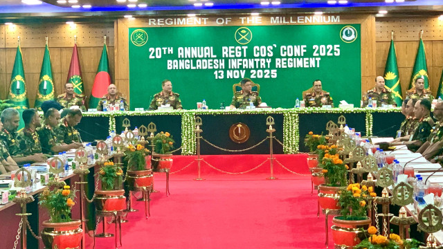 রাজশাহী সেনানিবাসস্থ বাংলাদেশ ইনফ্যান্ট্রি রেজিমেন্টাল সেন্টার (বিআইআরসি)-এর শহীদ কর্নেল নকীব হলে বৃহস্পতিবার (১৩ নভেম্বর) বাংলাদেশ ইনফ্যান্ট্রি রেজিমেন্টের ২০তম বাৎসরিক অধিনায়ক সম্মেলন-২০২৫ অনুষ্ঠিত হয়েছে।