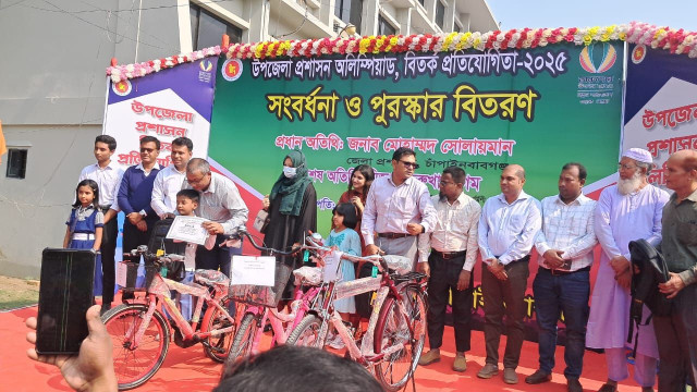বৃহস্পতিবার দুপুরে উপজেলা পরিষদ চত্বরে আয়োজিত অনুষ্ঠানে উপজেলা প্রশাসন অলিম্পিয়াড ও বির্তক প্রতিযোগিতায় বিজয়ীদের মাঝে বিজয়ীদের মাঝে ৭১টি বাইসাইকেল, ২৫১ জনকে সনদ ও স্কুল ব্যাগ তুলে দেন জেলা প্রশাসক মোহাম্মদ সোলায়মান। একই সঙ্গে অসহায় ২৭ জন প্রতিবন্ধীকে হুইল চেয়ার ও ২২ নারী উদ্যোক্তাকে সেলাই মেশিন দেয়া হয়।