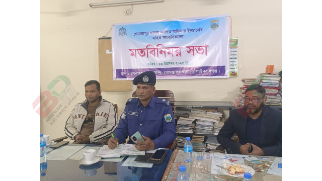 মতবিনিময়ে উপস্থিত ছিলেন এস আই গৌরাঙ্গ ও শামিম হোসেন, উপজেলা প্রেসক্লাব সভাপতি আতিকুল ইসলাম আজম, সহ সভাপতি সফিকুল ইসলাম, সহ সম্পাদক আল মামুন বিশ্বাস, গোমস্তাপুর উপজেলা প্রেসক্লাব সভাপতি নুর মোহাম্মদ, গোমস্তাপুর স্বাধীন প্রেসক্লাব সভাপতি আলাউদ্দিন পারভেজ, গোমস্তাপুর স্মার্ট প্রেসক্লাব সভাপতি আব্দুল ওয়াদুদ, সাধারণ সম্পাদক সামিরুল ইসলাম, জাকির হোসেন সনি, শাহিন, তুহিন,এরশাদ আলী, কাবিরুল, মনির আহমেদ, প্রমুখ।