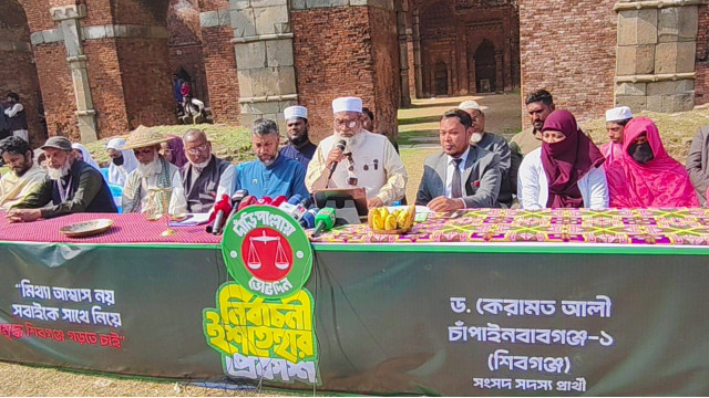 ত্রয়োদশ জাতীয় সংসদ নির্বাচন উপলক্ষে চাঁপাইনবাবগঞ্জ-১ শিবগঞ্জ আসনের জামায়াত মনোনীত প্রার্থী ড. কেরামত আলী শুক্রবার শাহবাজপুর ইউনিয়নের দারসবাড়ী মসজিদ প্রাঙ্গণে তার নির্বাচনী ইশতেহার ঘোষণা করেছেন।