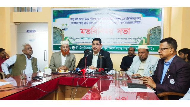 আসন্ন মাহে রমজান মাসের পবিত্রতা রক্ষা, নিত্যপ্রয়োজনীয় ভোগ্যপণ্যের মূল্য স্থিতিশীল রাখা, বাজারে পর্যাপ্ত সরবরাহ নিশ্চিতকরণ এবং খাদ্য ভেজাল ও দূষণ প্রতিরোধের লক্ষ্যে চাঁপাইনবাবগঞ্জে এক মতবিনিময় সভা অনুষ্ঠিত হয়েছে। ১৫ ফেব্রুয়ারি রবিবার বিকাল ৪টায় দি চাঁপাইনবাবগঞ্জ চেম্বার অব কমার্স এন্ড ইন্ডাস্ট্রির সম্মেলন কক্ষে এ সভা অনুষ্ঠিত হয়। সভায় সভাপতিত্ব করেন চেম্বারের সভাপতি আব্দুল ওয়াহেদ। উপস্থিত ছিলেন জেলা কৃষি বিপণন কর্মকর্তা মোঃ মমিনুল হক, আদর্শ গ্রুপের স্বত্বাধিকারী মোঃ সাদিকুল ইসলাম, চেম্বারের পরিচালক আব্দুল বারেক, পরিচালক মোঃ শহিদুল ইসলাম,এম কোরাইশী মিলু প্রমুখ। এছাড়াও জেলার বিভিন্ন ব্যবসায়ী, ইলেকট্রনিক ও প্রিন্ট মিডিয়ার প্রতিনিধিরা উপস্থিত ছিলেন।