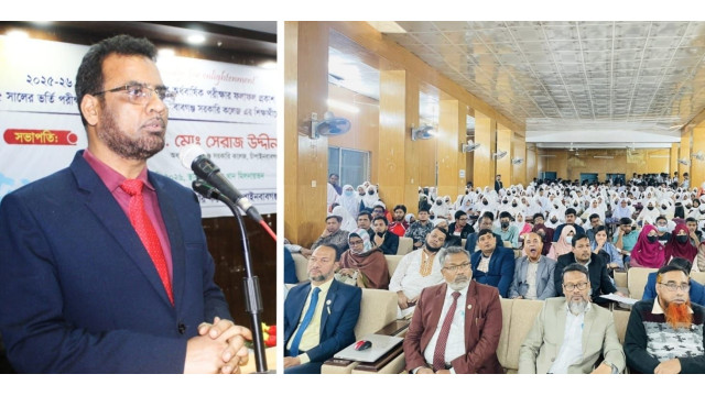 ২০২৫-২৬ শিক্ষাবর্ষে একাদশ শ্রেণির অর্ধবার্ষিক পরীক্ষার ফলাফল প্রকাশ এবং ২০২৫ সালের ভর্তি পরীক্ষায় কৃতিত্বের স্বাক্ষর রাখা শিক্ষার্থীদের সংবর্ধনা প্রদান করেছে নবাবগঞ্জ সরকারি কলেজ। (১৭ ফেব্রুয়ারি) মঙ্গলবার সকাল ১০টায় কলেজের এন এম খান মিলনায়তনে এ অনুষ্ঠান অনুষ্ঠিত হয়। অনুষ্ঠানে সভাপতিত্ব করেন কলেজের অধ্যক্ষ ড. মোঃ সেরাজ উদ্দীন। তিনি তার বক্তব্যে শিক্ষার্থীদের শতভাগ উপস্থিতি নিশ্চিত করা এবং লেখাপড়ার প্রতি সর্বোচ্চ গুরুত্ব দেওয়ার আহ্বান জানান। তিনি বলেন, নিয়মিত উপস্থিতি ও কঠোর পরিশ্রমই ভালো ফলাফলের মূল চাবিকাঠি। কলেজের সুনাম অক্ষুণ্ন রাখতে শিক্ষার্থীদের আরও মনোযোগী হওয়ার আহ্বান জানান তিনি।