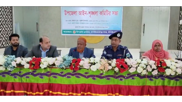 চাঁপাইনবাবগঞ্জ সদর উপজেলা আইন-শৃঙ্খলা কমিটির মাসিক সভা অনুষ্ঠিত হয়েছে। ২৬ ফেব্রুয়ারি বৃহস্পতিবার সকাল ১০ ঘটিকায় উপজেলা পরিষদ হলরুমে সদর উপজেলা প্রশাসনের আয়োজনে এ সভা অনুষ্ঠিত হয়। সভায় সভাপতিত্ব করেন উপজেলা নির্বাহী অফিসার মারুফ আফজাল রাজন। প্রধান অতিথি হিসেবে বক্তব্য দেন চাঁপাইনবাবগঞ্জ-৩ আসনের নবনির্বাচিত সংসদ সদস্য মোঃ নূরুল ইসলাম বুলবুল। সভায় আরও উপস্থিত ছিলেন সদর মডেল থানার অফিসার ইনচার্জ নুরে আলম, উপজেলা প্রাণীসম্পদ কর্মকর্তা ডাঃ মোসাঃ শারমিন আক্তার, সদর উপজেলা প্রকৌশলী অধিদপ্তরের আজাহারুল ইসলাম, চাঁপাইনবাবগঞ্জ মাদকদ্রব্য নিয়ন্ত্রণ অধিদপ্তরের পরিদর্শক মোঃ রফিকুল ইসলাম, উপজেলা সমাজসেবা অফিসার কাঞ্চন কুমার দাস সহ উপজেলার বিভিন্ন দপ্তরের কর্মকর্তারা। সভায় সদর উপজেলার সার্বিক আইন-শৃঙ্খলা পরিস্থিতি, মাদক নির্মূল, চুরি-ডাকাতি প্রতিরোধ, যানজট নিরসন, বাজার তদারকি এবং জনসচেতনতা বৃদ্ধির বিষয় নিয়ে বিস্তারিত আলোচনা হয়। উপস্থিত কর্মকর্তারা নিজ নিজ দপ্তরের বিভিন্ন সমস্যা ও চলমান কার্যক্রম তুলে ধরেন।