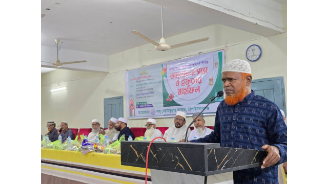শাহ্ নেয়ামতুল্লাহ কলেজ এর আয়োজনে পবিত্র মাহে রমজানের তাৎপর্য শীর্ষক আলোচনা সভা ও ইফতার মাহফিল অনুষ্ঠিত হয়েছে। (৩ মার্চ) মঙ্গলবার কলেজের মনিউকিল স্মৃতি মিলনায়তনে এ আলোচনা সভা ও ইফতার মাহফিল অনুষ্ঠিত হয়। অনুষ্ঠানে সভাপতিত্ব করেন কলেজ গভর্নিং বডির সভাপতি ও সাবেক এমপি মোহাঃ লতিফুর রহমান। প্রধান অতিথি হিসেবে উপস্থিত ছিলেন নূরুল ইসলাম বুলবুল। শাহ্ নেয়ামতুল্লাহ কলেজের অধ্যক্ষ মোহাঃ তরিকুল আলম সিদ্দিকি নবনির্বাচিত এমপিকে ফুলেল শুভেচ্ছা জানান। অনুষ্ঠানে বিশেষ অতিথি হিসেবে উপস্থিত ছিলেন ড. কেরামত আলী, চাঁপাইনবাবগঞ্জ জেলা আইনজীবী সমিতির নবনির্বাচিত সভাপতি আবদুল ওদুদ, সাধারণ সম্পাদক আবু হাসিব এবং বাংলাদেশ জামায়াতে ইসলামীর রাজশাহী অঞ্চলের সহকারী জোন প্রধান মোঃ রফিকুল ইসলামসহ বিভিন্ন শ্রেণি-পেশার গণ্যমান্য ব্যক্তিবর্গ। প্রধান অতিথির বক্তব্যে নূরুল ইসলাম বুলবুল বলেন, রমজান মাস মানুষকে আত্মশুদ্ধি, সংযম ও তাকওয়ার শিক্ষা দেয়। ব্যক্তি জীবনের ভেতর যেমন আল্লাহভীতি জাগ্রত হয়, তেমনি সমাজ জীবন থেকেও অন্যায় ও বেহায়াপনা দূর করার শিক্ষা দেয় রমজান। তিনি বলেন, “সমাজের অশান্তি দূর করে একটি মানবিক রাষ্ট্র গঠনে রমজানের শিক্ষার তুলনা নেই। এ শিক্ষাকে বাস্তব জীবনে কাজে লাগাতে হবে।”