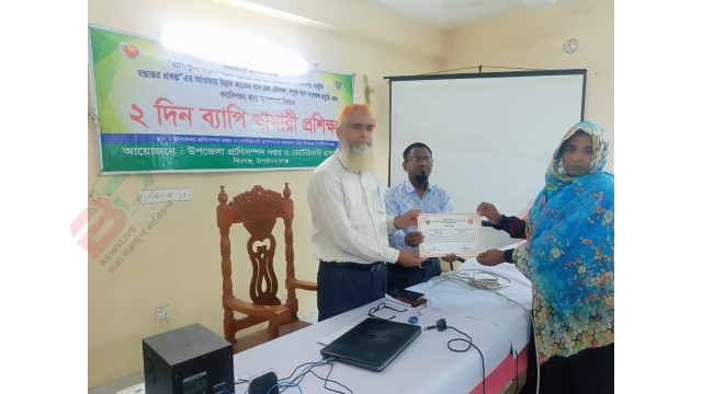 প্রাণিসম্পদ অফিসের প্রশিক্ষণ হল রুমে মঙ্গলবার প্রাণি পুষ্টি উন্নয়নে উন্নত জাতের ঘাস চাষ সম্প্রসারণ ও লাগসই প্রযুক্তি হস্তান্তর প্রকল্পের আওতায় দুই দিন প্রশিক্ষনের সমাপনি দিনে ঘাসচাষী খামারীদের মাঝে প্রশিক্ষণ সনদ ও ব্যাগ বিরন করা হয়।