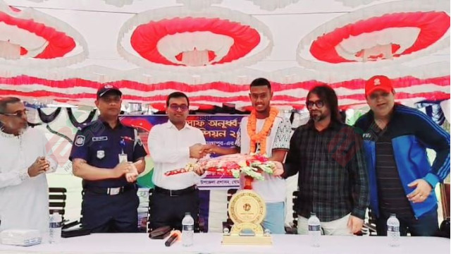মালদ্বীপে সাফ অনুর্ধ-২০ ফুটবল টুর্নামেন্টে চ্যাম্পিয়ন বাংলাদেশ দলের অন্যতম সদস্য ইউসুফ আলীকে গণসংবর্ধনা দিয়েছে উপজেলা ক্রীড়া সংস্থা।