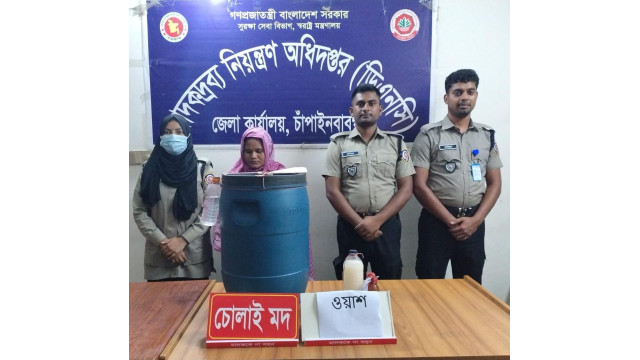 চাঁপাইনবাবগঞ্জের নাচোলে মাদকবিরোধী বিশেষ অভিযান পরিচালনা করে বিপুল পরিমাণ চোলাইমদ ও মাদক তৈরির উপকরণ (ওয়াশ) উদ্ধার করেছে জেলা মাদকদ্রব্য নিয়ন্ত্রণ অধিদপ্তর (ডিএনসি)। অভিযানে জেসমিন মার্ডী নামে এক নারীকে গ্রেফতার করা হলেও কৌশলে পালিয়ে গেছেন তার স্বামী।