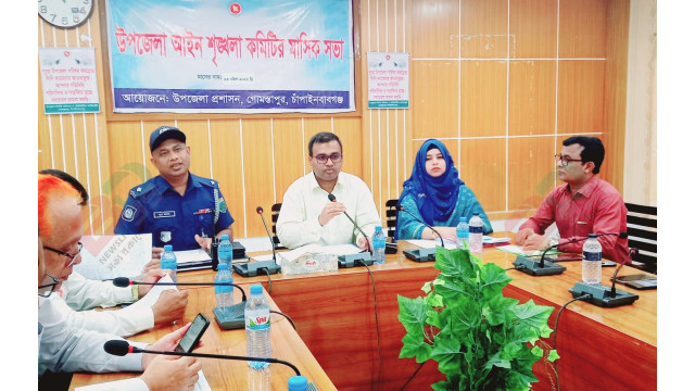 চাঁপাইনবাবগঞ্জের গোমস্তাপুরে আইন শৃঙ্খলা কমিটির মাসিক সভা অনুষ্ঠিত হয়েছে।